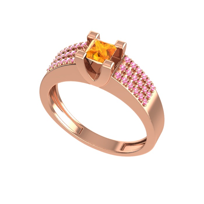 Sitrin ve pembe kuvars 8 ayar rose altın yüzük