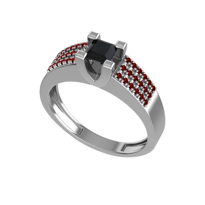 Siyah zirkon ve garnet 925 ayar gümüş yüzük
