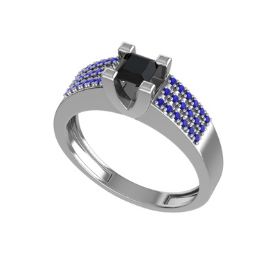 Siyah zirkon ve lab safir 14 ayar beyaz altın yüzük