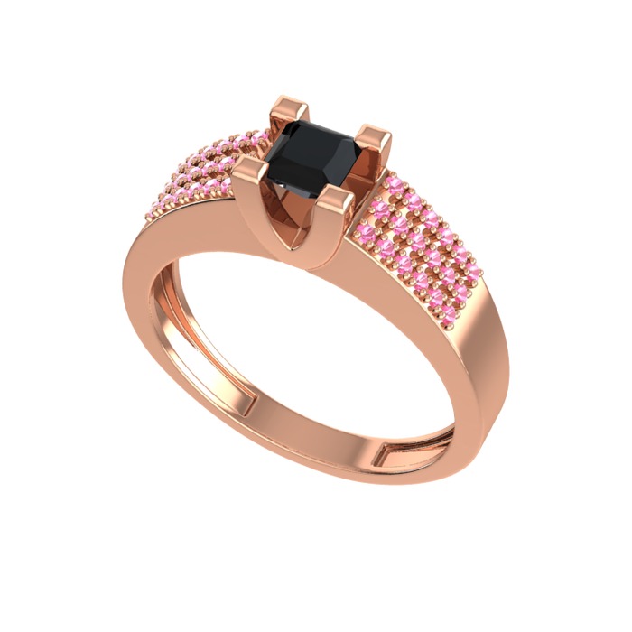 Siyah zirkon ve pembe kuvars 925 ayar rose altın kaplama gümüş yüzük