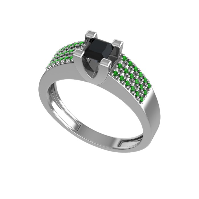 Siyah zirkon ve yeşil kuvars 925 ayar gümüş yüzük