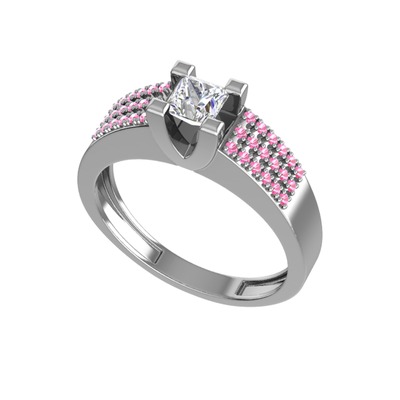 Swarovski ve pembe kuvars 14 ayar beyaz altın yüzük