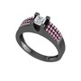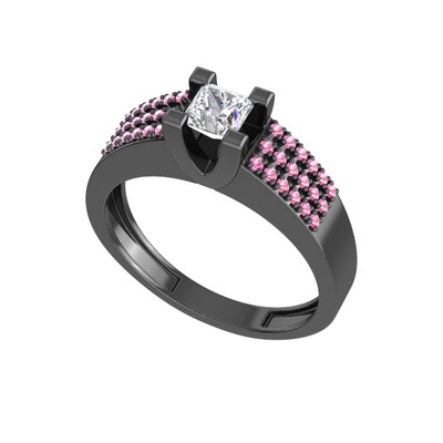 Swarovski ve pembe kuvars 925 ayar siyah rodyum kaplama gümüş yüzük