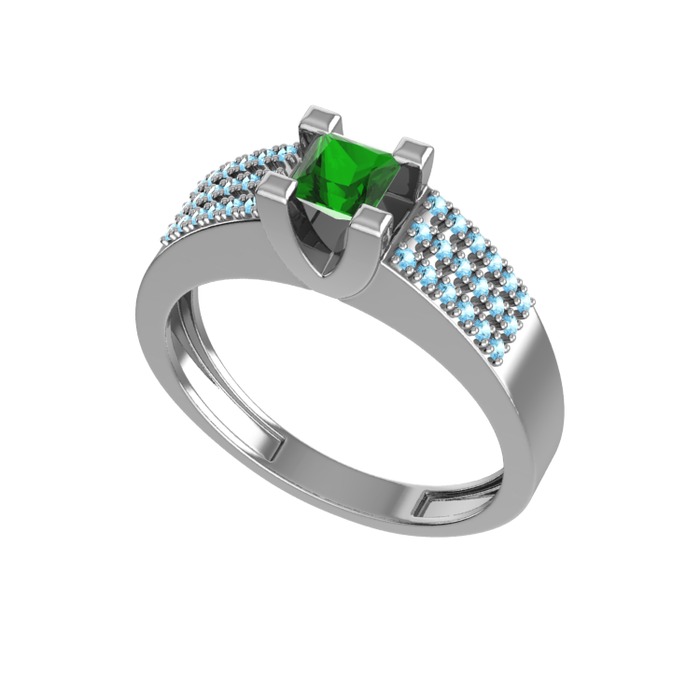 Yeşil kuvars ve akuamarin 18 ayar beyaz altın yüzük