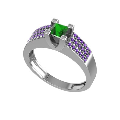 Yeşil kuvars ve ametist 14 ayar beyaz altın yüzük