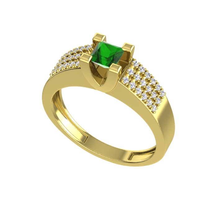 Yeşil kuvars ve beyaz zirkon 14 ayar altın yüzük