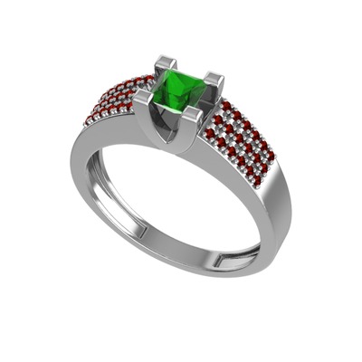 Yeşil kuvars ve garnet 18 ayar beyaz altın yüzük