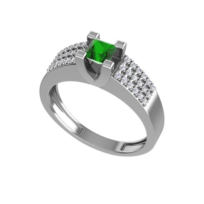 Yeşil kuvars ve pırlanta 14 ayar beyaz altın yüzük (0.3168 karat)