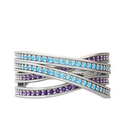 Akuamarin ve ametist 925 ayar gümüş yüzük