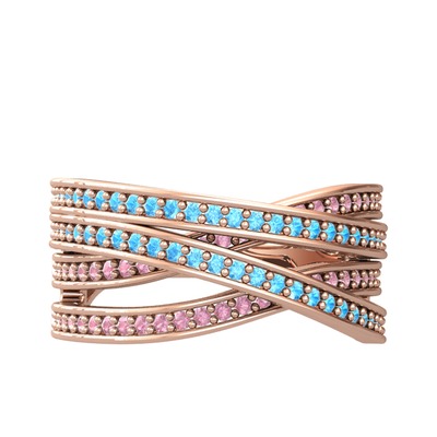 Akuamarin ve pembe kuvars 925 ayar rose altın kaplama gümüş yüzük