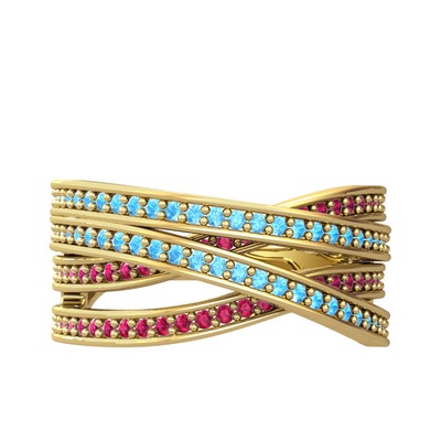 Akuamarin ve rodolit garnet 8 ayar altın yüzük