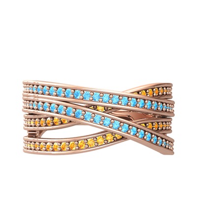 Akuamarin ve sitrin 18 ayar rose altın yüzük