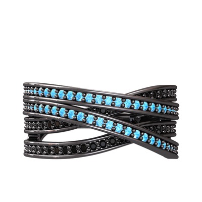 Akuamarin ve siyah zirkon 925 ayar siyah rodyum kaplama gümüş yüzük