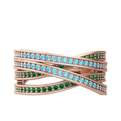 Akuamarin ve yeşil kuvars 14 ayar rose altın yüzük