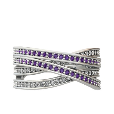 Ametist ve beyaz zirkon 925 ayar gümüş yüzük