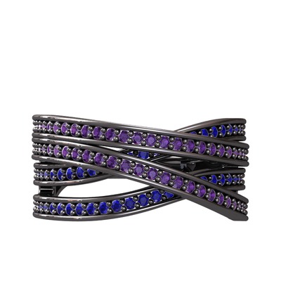Ametist ve lab safir 925 ayar siyah rodyum kaplama gümüş yüzük