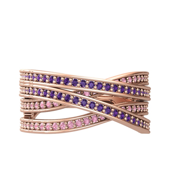 Ametist ve pembe kuvars 8 ayar rose altın yüzük