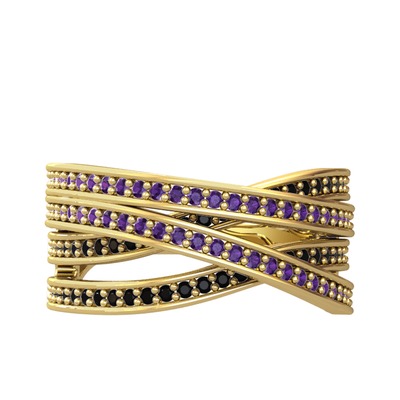 Ametist ve siyah zirkon 925 ayar altın kaplama gümüş yüzük