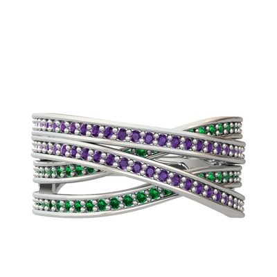 Ametist ve yeşil kuvars 18 ayar beyaz altın yüzük