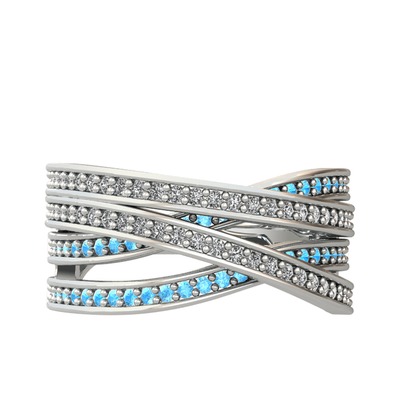 Beyaz zirkon ve akuamarin 925 ayar gümüş yüzük