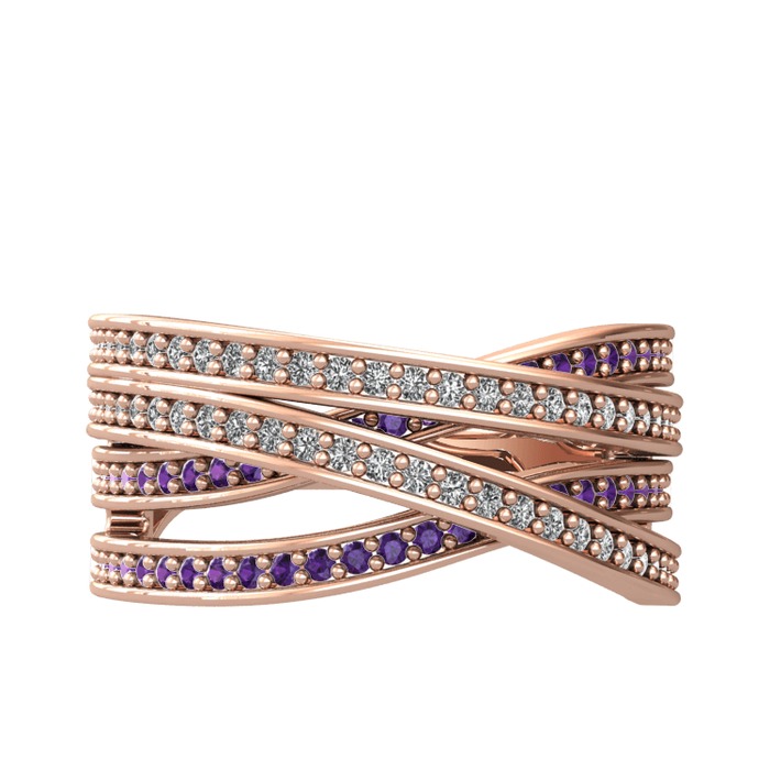 Beyaz zirkon ve ametist 8 ayar rose altın yüzük