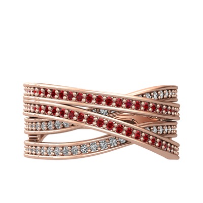 Garnet ve beyaz zirkon 8 ayar rose altın yüzük