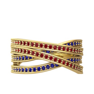 Garnet ve lab safir 925 ayar altın kaplama gümüş yüzük