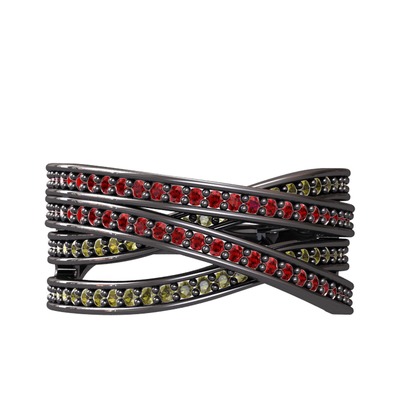 Garnet ve peridot 925 ayar siyah rodyum kaplama gümüş yüzük