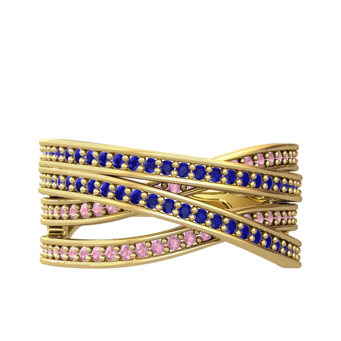 Lab safir ve pembe kuvars 18 ayar altın yüzük