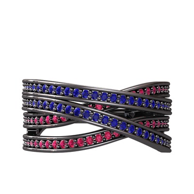 Lab safir ve rodolit garnet 925 ayar siyah rodyum kaplama gümüş yüzük