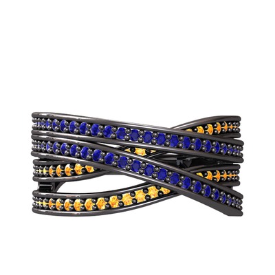 Lab safir ve sitrin 925 ayar siyah rodyum kaplama gümüş yüzük