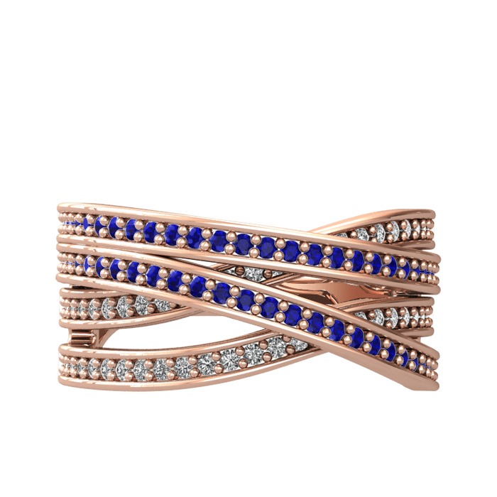 Lab safir ve swarovski 8 ayar rose altın yüzük