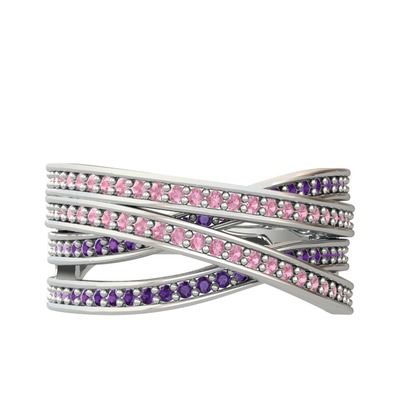 Pembe kuvars ve ametist 18 ayar beyaz altın yüzük