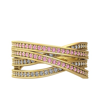 Pembe kuvars ve beyaz zirkon 8 ayar altın yüzük