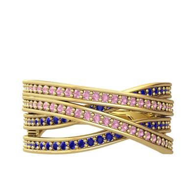 Pembe kuvars ve lab safir 14 ayar altın yüzük