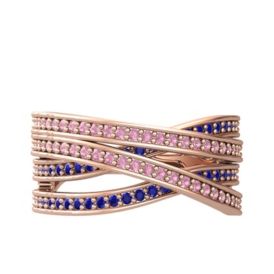 Pembe kuvars ve lab safir 14 ayar rose altın yüzük