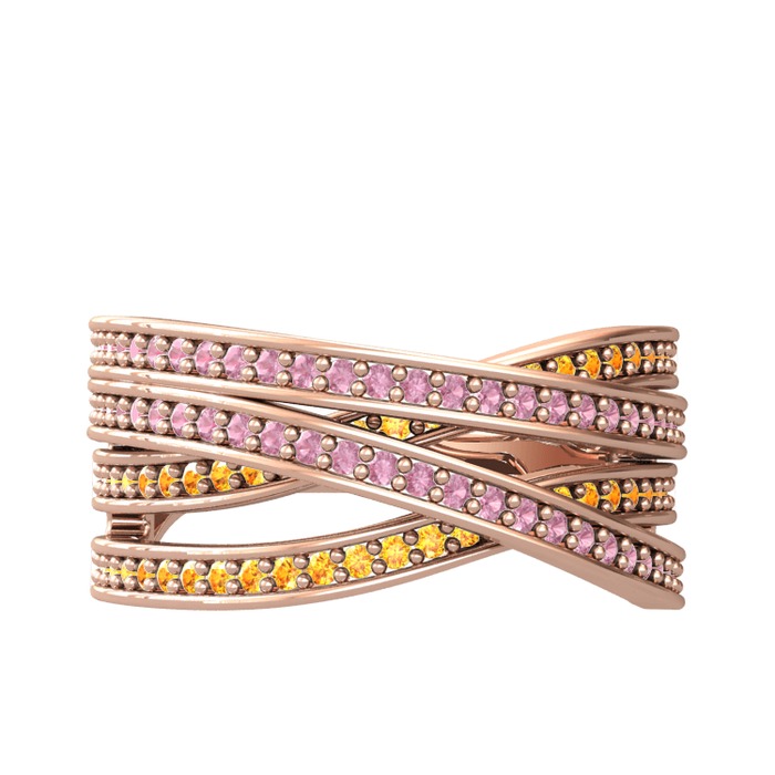 Pembe kuvars ve sitrin 14 ayar rose altın yüzük