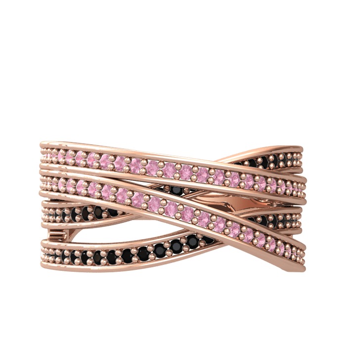 Pembe kuvars ve siyah zirkon 18 ayar rose altın yüzük