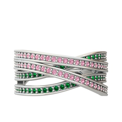 Pembe kuvars ve yeşil kuvars 8 ayar beyaz altın yüzük
