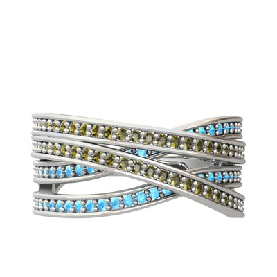 Peridot ve akuamarin 8 ayar beyaz altın yüzük