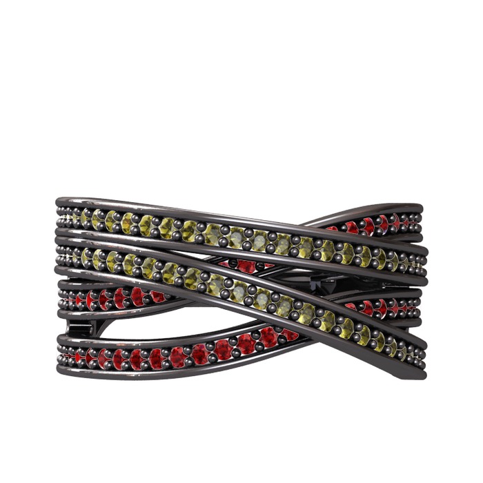 Peridot ve garnet 925 ayar siyah rodyum kaplama gümüş yüzük