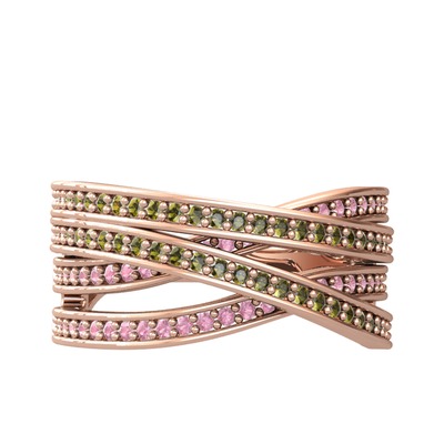 Peridot ve pembe kuvars 18 ayar rose altın yüzük