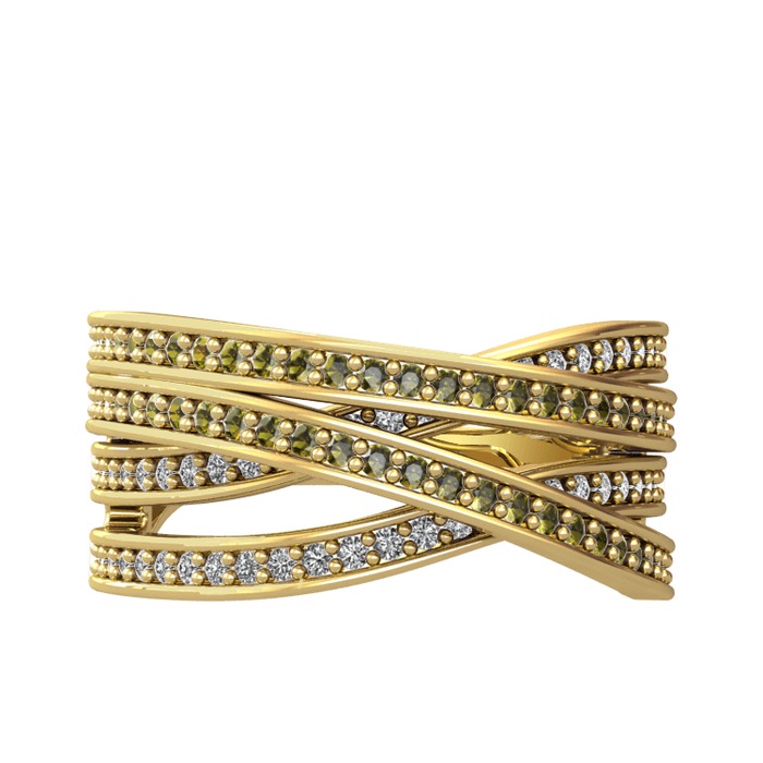 Peridot ve pırlanta 925 ayar altın kaplama gümüş yüzük (0.484 karat)