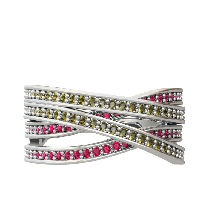 Peridot ve rodolit garnet 18 ayar beyaz altın yüzük