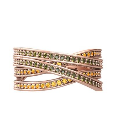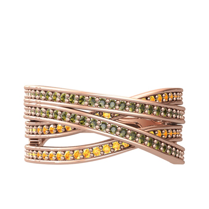 Peridot ve sitrin 8 ayar rose altın yüzük