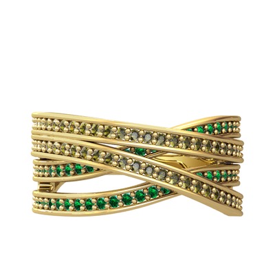 Peridot ve yeşil kuvars 14 ayar altın yüzük