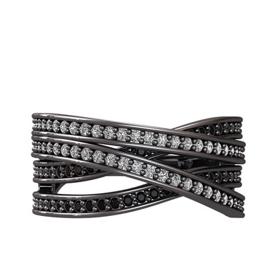 Pırlanta ve siyah zirkon 925 ayar siyah rodyum kaplama gümüş yüzük (0.484 karat)