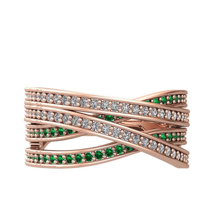 Pırlanta ve yeşil kuvars 8 ayar rose altın yüzük (0.484 karat)