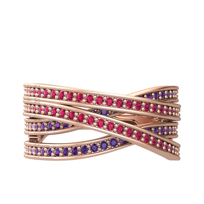 Rodolit garnet ve ametist 8 ayar rose altın yüzük
