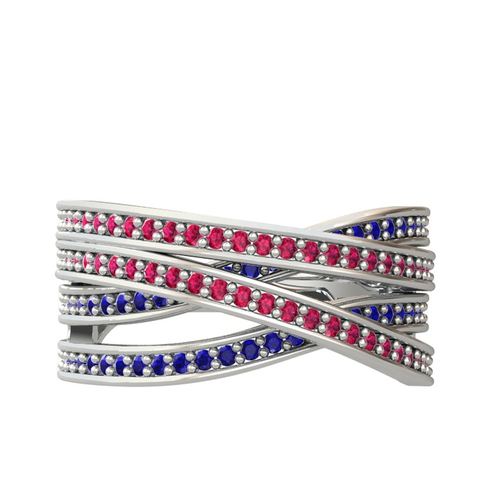 Rodolit garnet ve lab safir 8 ayar beyaz altın yüzük